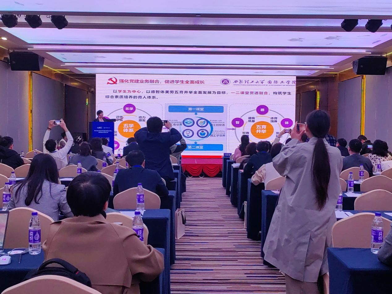 报告中,杨媛首先介绍了公司成立的基本情况、办学定位以及人才培养定位,特别指出公司作为中西部地区最早拥有本科、硕士、博士多层次招生培养的中外合作办学机构承载了为党育人、为国育才的重要使命。随后,她详细阐述了公司“两底线四强化”的党建工作新模式和“三维协同化”党建工作体系,并从强化思想政治教育、强化政治制度建设、强化基层组织建设、强化党建业务融合四个方面分享了公司在办学一轮中将党建思政融入中外合作办学育人全过程的宝贵经验,以及在构建学科交叉融合课程体系、五位一体育人体系、创新创业教育、国工之星引领等方面取得的硕果,首届毕业生培养成效突出,赢得了与会者的广泛关注与高度认可。在交流研讨环节,杨媛耐心、细致解答了同行们的提问。最后,杨媛在闭幕式上代表分论坛做了精彩的总结发言。