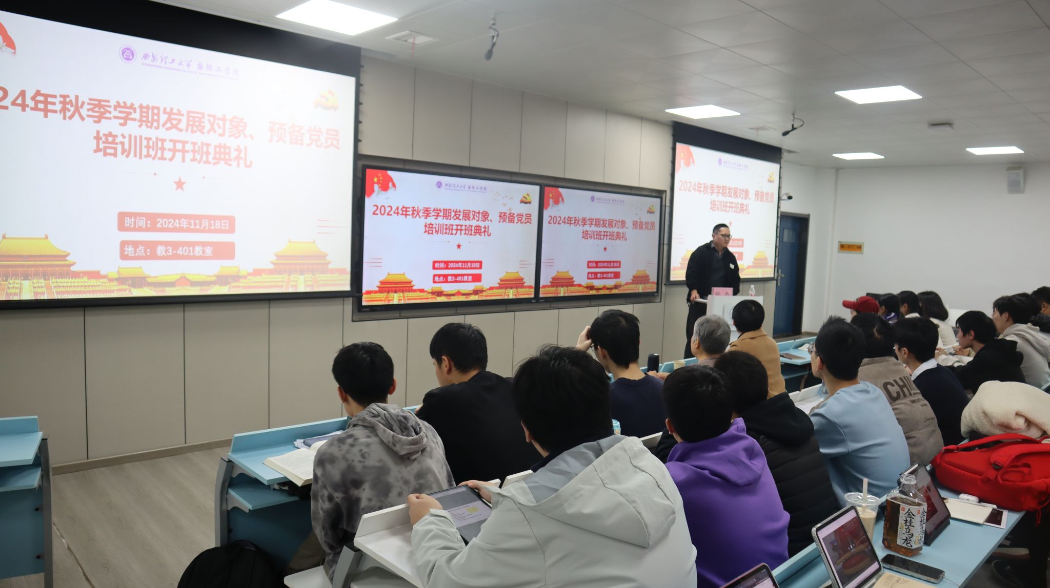 11月18日下午,公司在教3-401教室组织2024年秋季学期党员发展对象培训开班仪式。仪式在庄严的国歌声中拉开序幕,员工党建负责人张小飞介绍了本次培训的方案安排和纪律要求,参训学员代表计H221班刘鸿锐同学发言并郑重承诺:将珍惜培训机会,认真学习党的方针路线,不断增强政治意识,以实际行动践行党的宗旨,努力成为合格的社会主义建设者和接班人。威廉体育williamhill书记、经理杨媛做开班动员讲话并提出三点要求:一是在思想政治上,要提高思想认识,主动加强思想政治理论学习,关心国家大事;二是在能力素质上,要树立远大理想目标,勇担时代责任,锤炼过硬本领,在奋斗实践中增长才干;三是在人格品质上,要以优秀党员的标准严格要求自己,发挥先锋模范带头作用,用实际行动践行党的初心和使命。