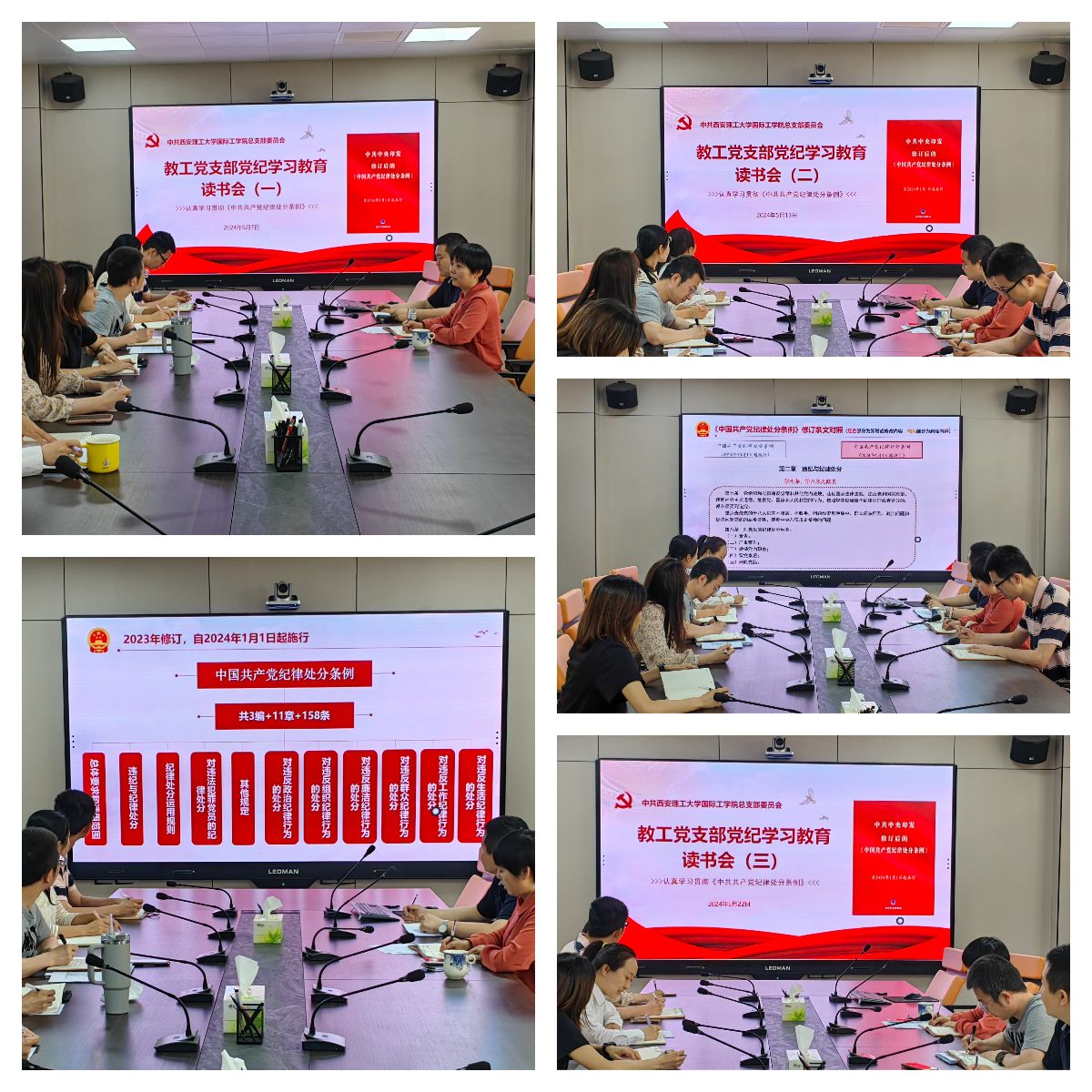 5月7日、13日、22日,教工党支部组织三期党纪学习教育读书会,逐字逐句学习了新修订的《中国共产党纪律处分条例》。支部书记王之石详细解读了新修订的党纪条例的变化,重点强调了党的政治纪律、组织纪律、廉洁纪律、群众纪律、工作纪律和生活纪律等方面的新要求。