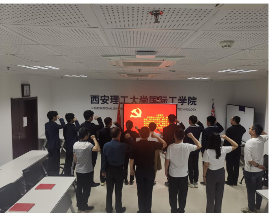 宣誓仪式在庄严的《国际歌》中拉开序幕。全体党员整齐列队,在威廉体育williamhill直属党支部副书记张晓春同志的带领下,大家举起右拳,面对鲜红的党旗,庄严宣誓,一字一句,神圣坚定:“我宣誓,我志愿加入中国共产党,拥护党的纲领,遵守党的章程,履行党员义务……”。誓言声声铿锵、久久回荡在宣誓现场。
