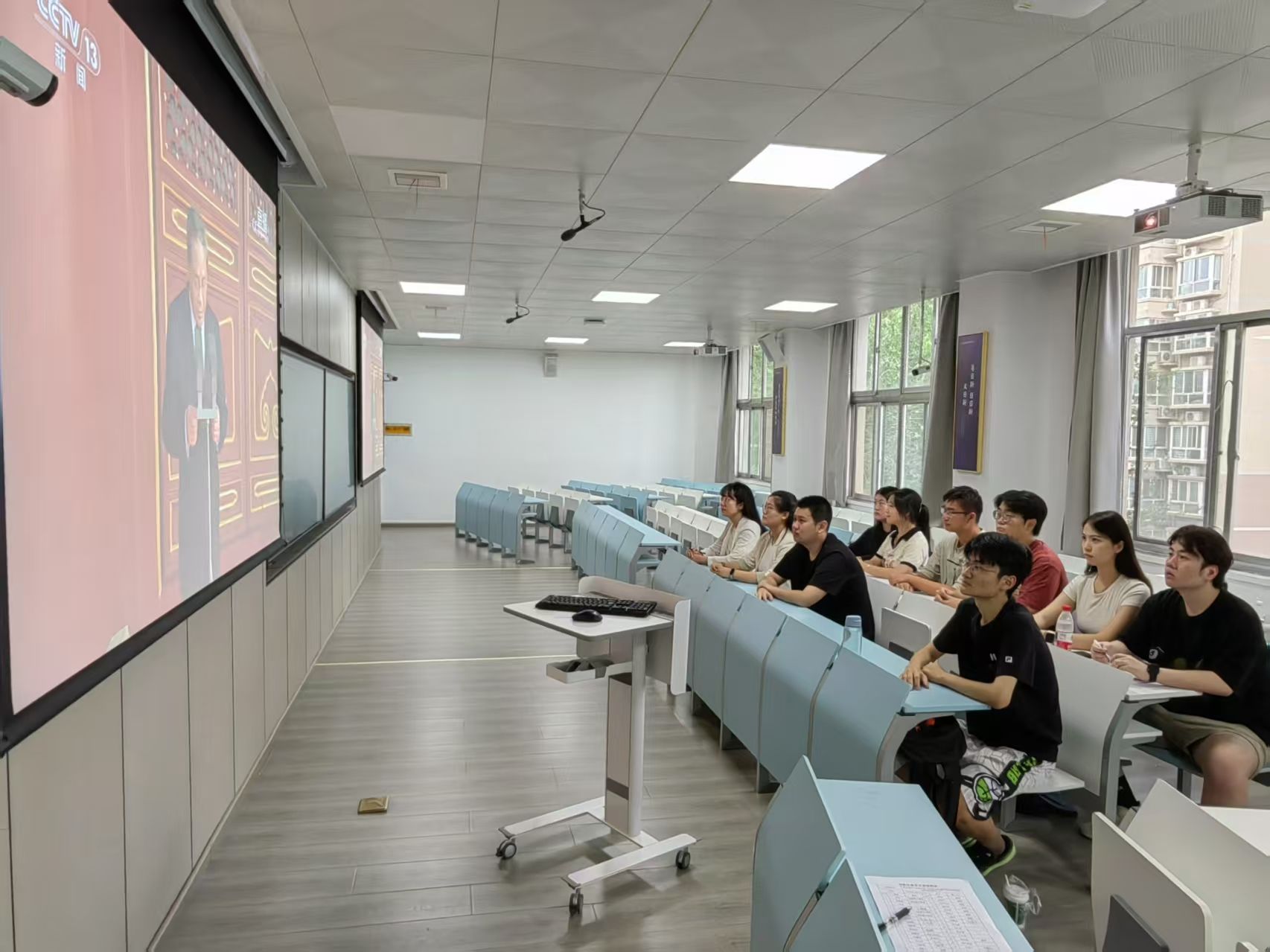 2025年9月3日上午9时,纪念中国人民抗日战争暨世界反法西斯战争胜利80周年大会在北京天安门广场隆重举行。威廉体育williamhill创新实践党支部组织全体员工党员在教三401教室集中观看这一具有重大历史意义的阅兵盛典。