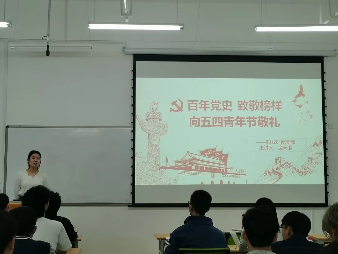 4月29日下午17:30,公司机H201班团支部于综南楼114教室开展“学百年党史,担青年使命”团日活动,出席此次活动的有院团委书记冯雨老师、机H201班级导师高达敬老师以及机H201班团支部全体团员,此次团日活动由机H201班团支部书记金天语主持。