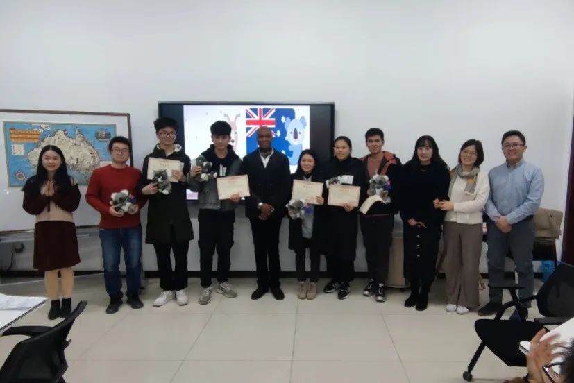 首先,同学们在观看与“环游澳洲”有关的的有趣小视频的同时,外教老师David向大家介绍了澳洲的风土人情以及当地的自然风光。在粗略地对澳洲景观有了一定的了解之后,同学们任意组成小组进行角色扮演轮流上台表演,表演结束后老师和同学们票选出两位最佳演员并进行了颁奖,同时给每一位参加活动的同学都发放了纪念品。最后,大家一起拍照留念,记录下这次美好的活动。