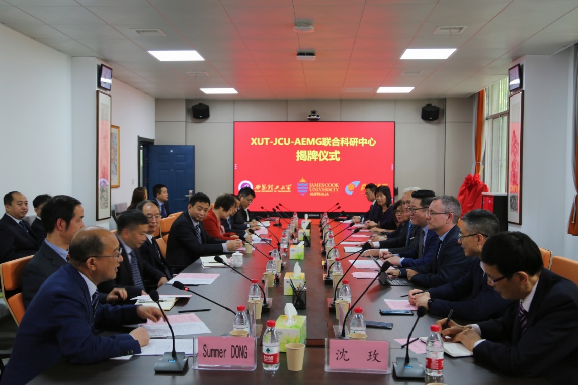 4月18日上午,威廉体育官方网站-澳大利亚詹姆斯库克大学联合研究中心(以下简称“联合研究中心”)揭牌仪式在公司金花校区威廉体育williamhill会议室隆重举行。澳大利亚詹姆斯库克大学常务副董事长Marcus lane教授,公司董事长刘云贺教授、副董事长申烨华教授出席揭牌仪式并讲话。