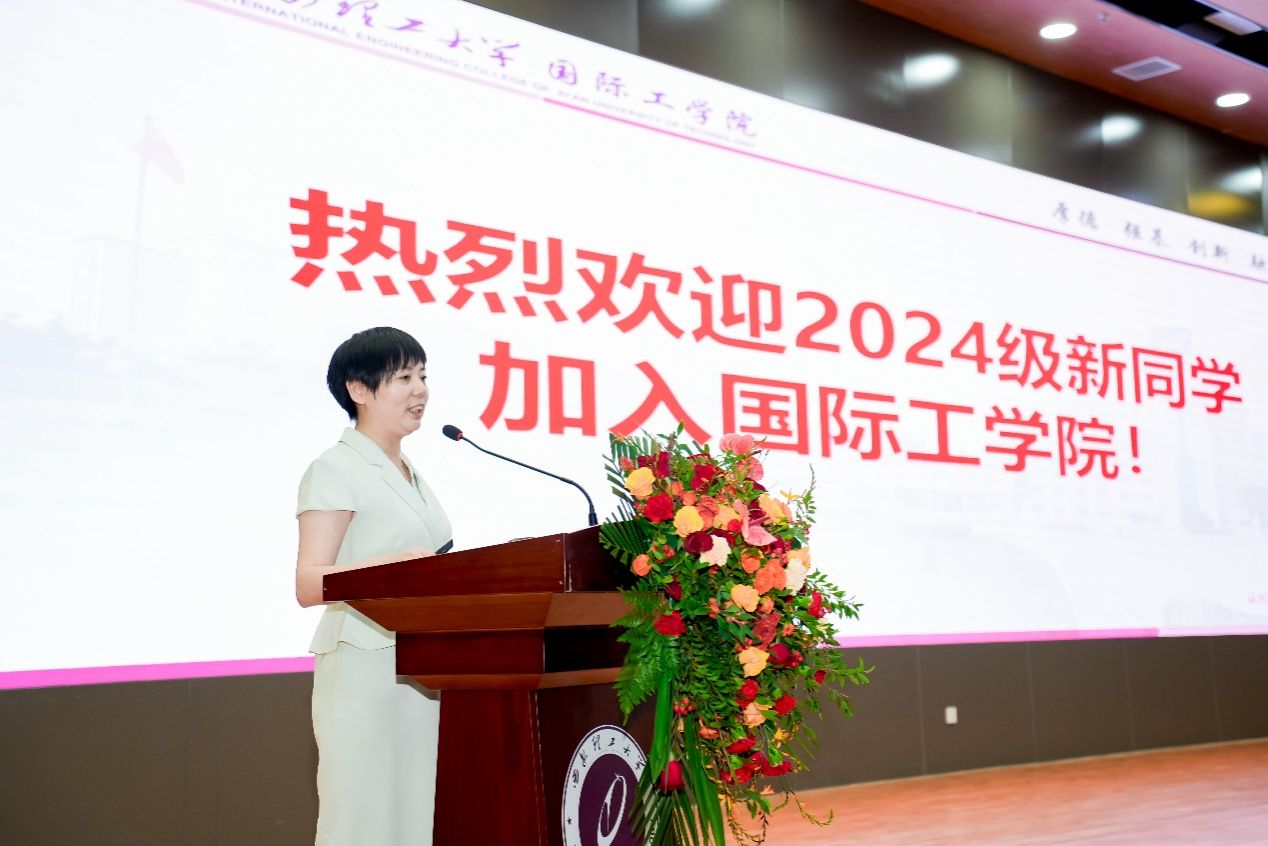 公司书记、经理杨媛详细介绍了公司的发展历程、培养体系和在人才培养方面的建设成果,分享了首届毕业生培养成效。她勉励2024级新生要明确目标,规划人生,开拓进取,在大学四年学习实践中创造属于自己的精彩篇章。