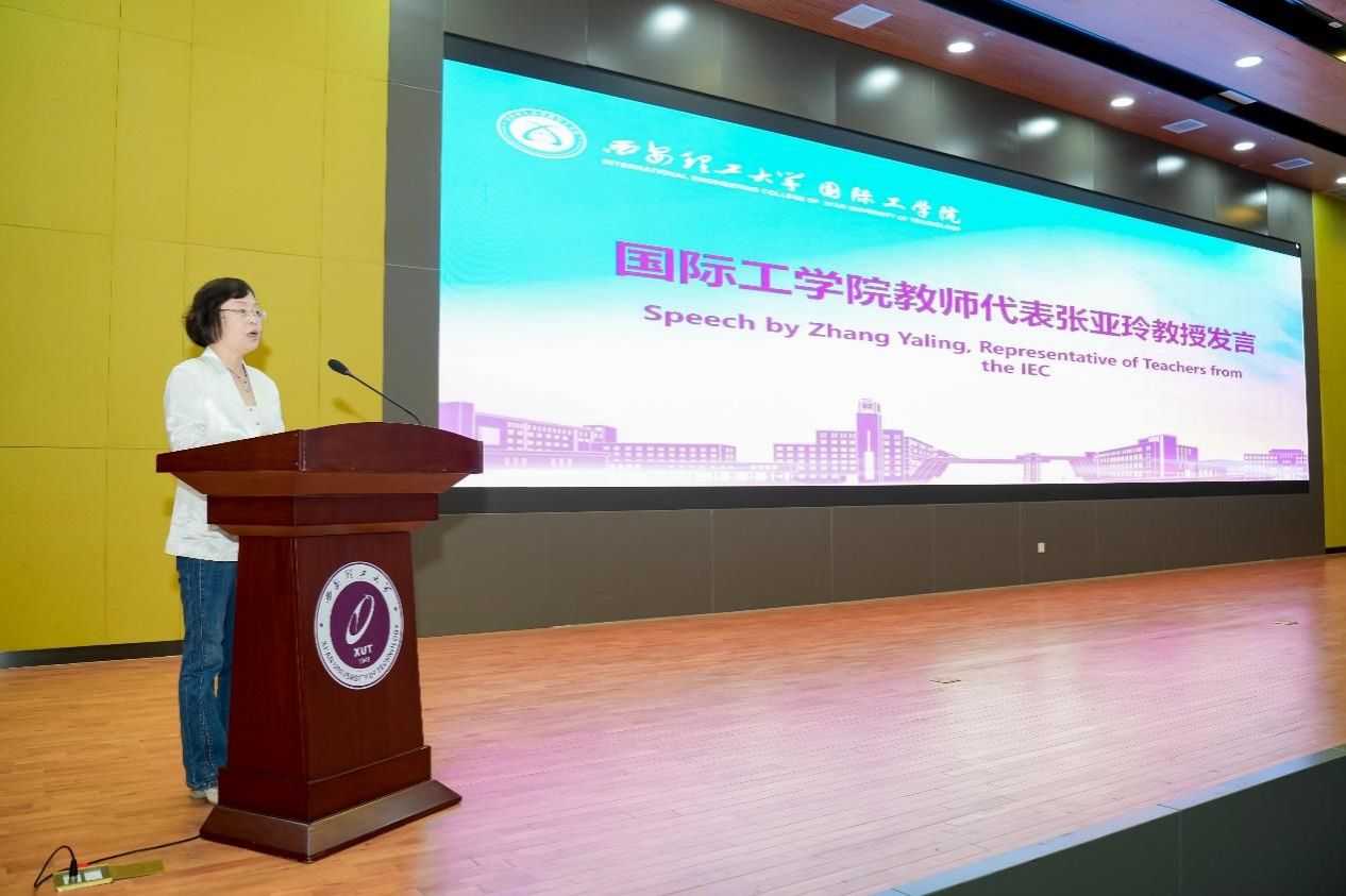 教师代表张亚玲教授鼓励同学们珍惜大学时光,在求知的道路上不断前行、持续超越自我。