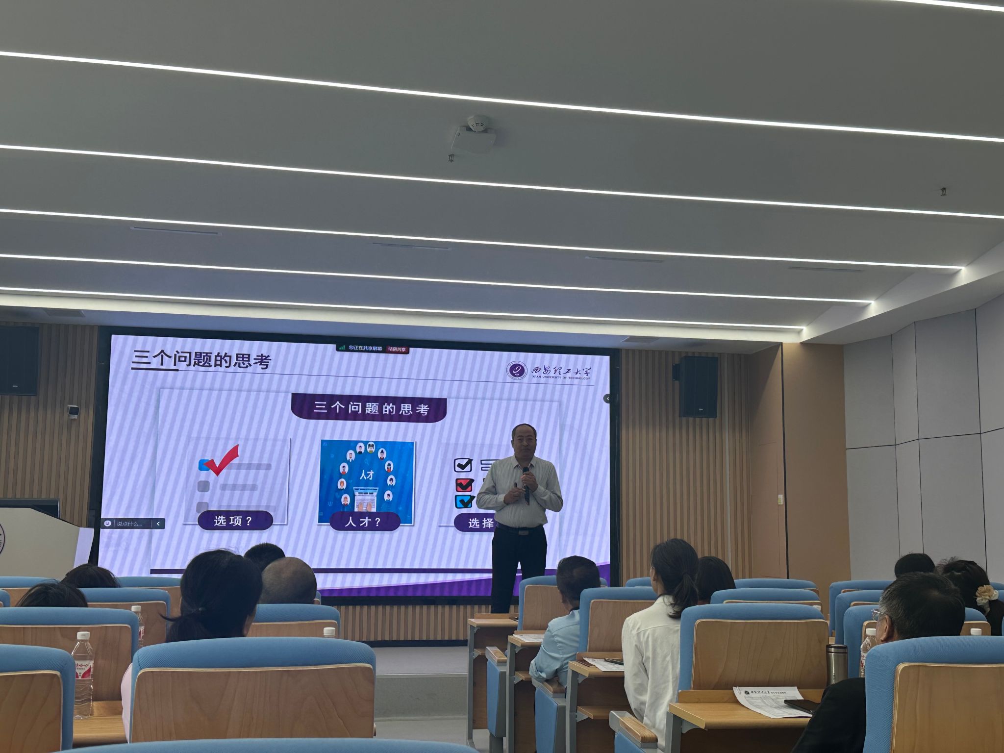会上,张晓春向家长们介绍了公司员工工作开展情况。列数据,说事实,准确分析了目前2021级员工特点与共性问题,通过往届员工案例,分析留学、国内考研、考公、就业、创业等不同路径适合的员工群体和相关注意事项,希望家长、员工与公司高度配合,结合实际环境和个人优势,扬长避短,制定合适的职业生涯规划。