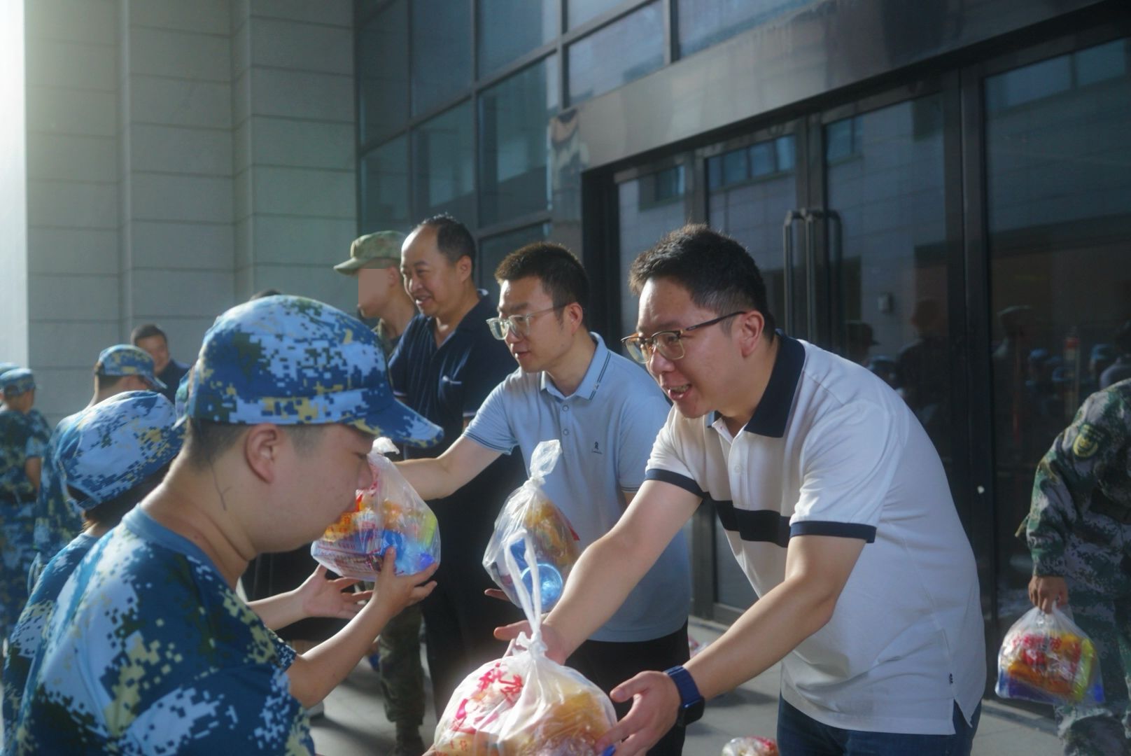 慰问期间,公司领导还向军训教官赠送了慰问品,并与他们进行了亲切的交流。教官们对公司领导的关心和支持表示衷心的感谢,并承诺将继续严格训练、科学施训,确保军训任务圆满完成。