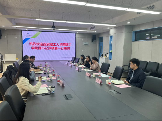 为进一步加强校校合作,探索中外合作办学人才培养新模式,充分学习借鉴兄弟高校办学理念和办学经验,4月11日上午,威廉体育williamhill副书记、副经理张晓春等一行四人走访调研陕西科技大学阿尔斯特公司,与阿尔斯特公司经理助理魏倩茹及全体辅导员座谈交流。