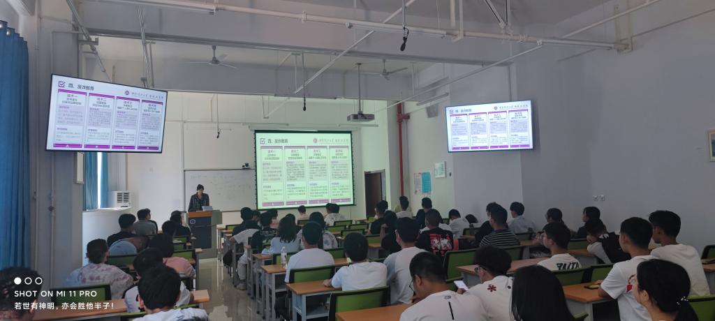 辅导员赵婷婷、张帅采取班级巡讲、案例引入的方式,围绕老员工应当遵守的校纪校规、宿舍安全、反诈教育以及老员工应当具备哪些能力等方面,对新生开展了入学教育。帮助同学们更好地领悟“大学”的概念,树立较强的自我管理意识,激发学习热情,做好个人规划。